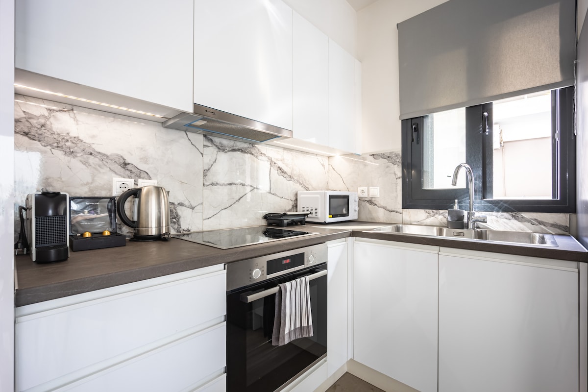 Choose this place if you are looking for a real Athenian experience combined with high-end hospitality in a fully renovated space. The Market Loft is located in the heart of the historical center, nearby major metro stations and walking distance from all the sights and attractions. It has a unique city view from the mountains to the sea, including a grand plan of the Acropolis and Lycabettus hill. It is designed minimally with high-end finishes, luxurious aesthetics and brand new equipment.