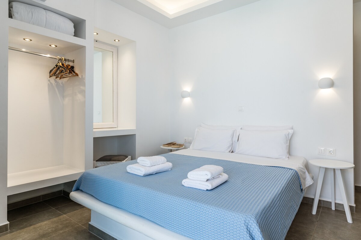 Villa Thalassa is part of a complex of 3 villas, located in a privileged seaside spot on the southwest coast of the island, where the northern summer winds (meltemi) rarely blow. Villa Thalassa embodies a philosophy of minimalist elegance and maximum comfort featuring five bedrooms with en suite bathrooms and a large open space living, dining and cooking area with panoramic views over its private infinity lap pool and into the sea.