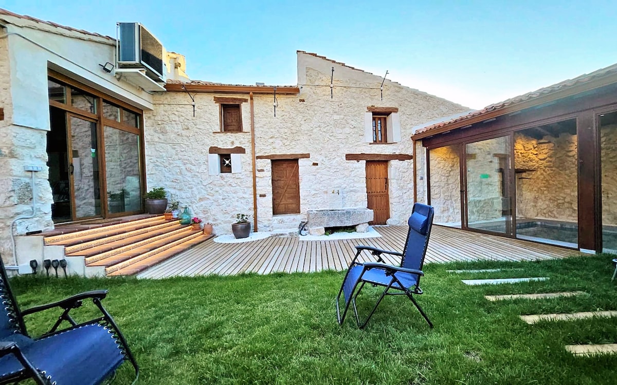 Casa Fuentes de Ledina is a cozy rural house located in Fuentidueña, surrounded by nature. With a rustic and modern style, it offers spacious and comfortable areas for up to 12 people. The house has several rooms, a large living room, and a fully equipped kitchen. Outdoors, there is a garden, a pool, and outdoor spaces. The surroundings are perfect for walking and cycling. It is the ideal place to enjoy the tranquility of the rural setting without sacrificing modern comforts.