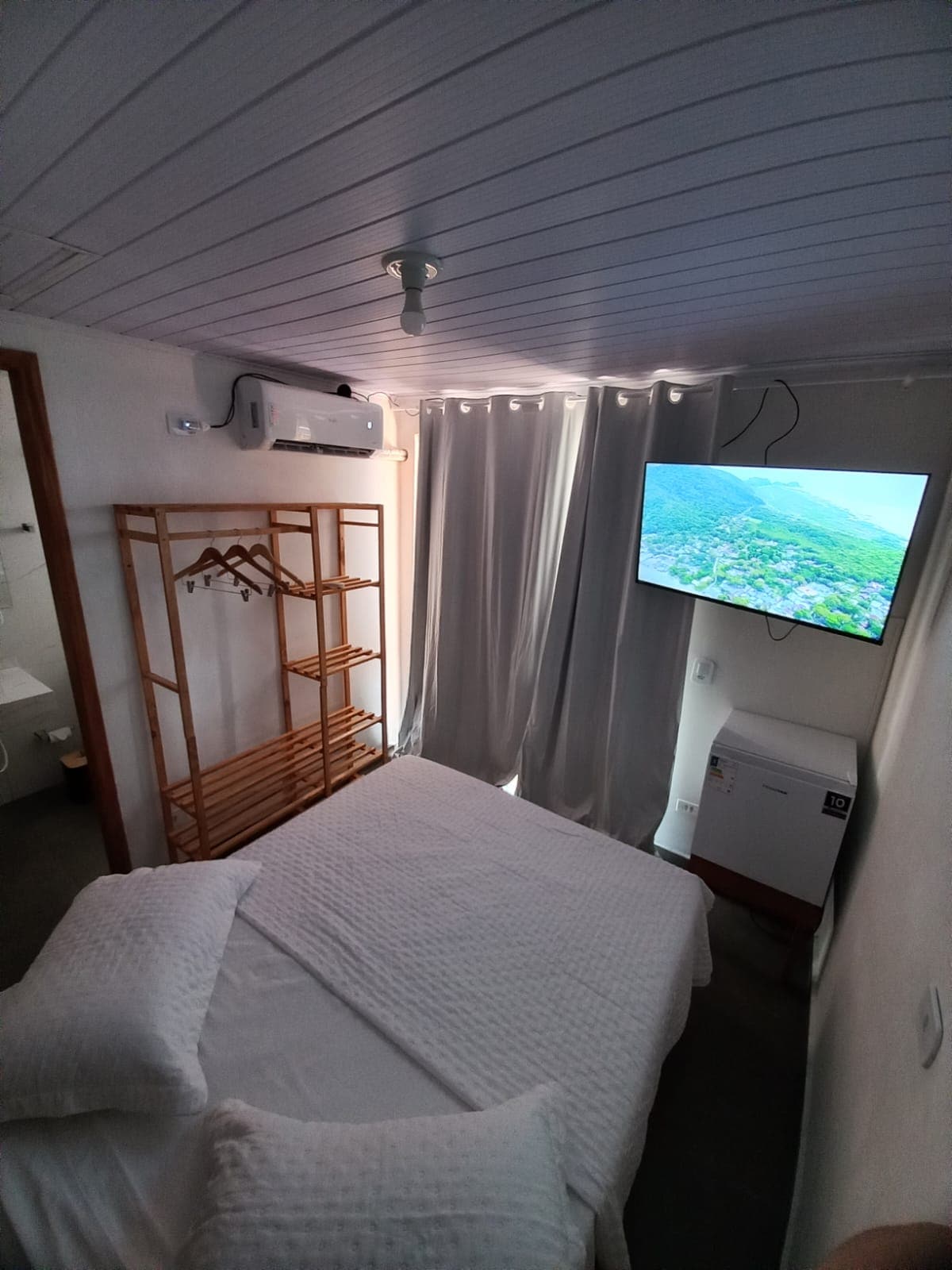The accommodation is not suitable for discerning persons. This beautiful guest suite is located in the Residencial La Paz, next to the bar Cavalo Marinho, in the village OF enchanted- ILHA DO MEL. The location is central, approximately 450 metres from the disembarkation, beaches and restaurants. The suite is equipped with air conditioning, TV and minibar. The bathroom is private. * Breakfast is simple. Wi-Fi is terrible