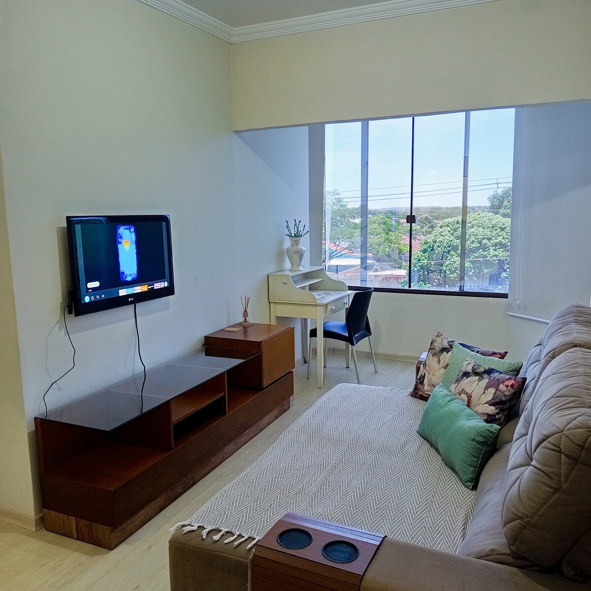 Apartment in a good location, close to the mall and bus station, an excellent option for both business and leisure travelers. You'll be close to everything you need for a practical and pleasant stay. The neighborhood is quiet and has a spacious parking lot with easy access, perfect for large vehicles such as trucks and SUVs. With a bedroom that accommodates up to 2 people, the apartment is designed to provide maximum comfort and convenience during your stay.
