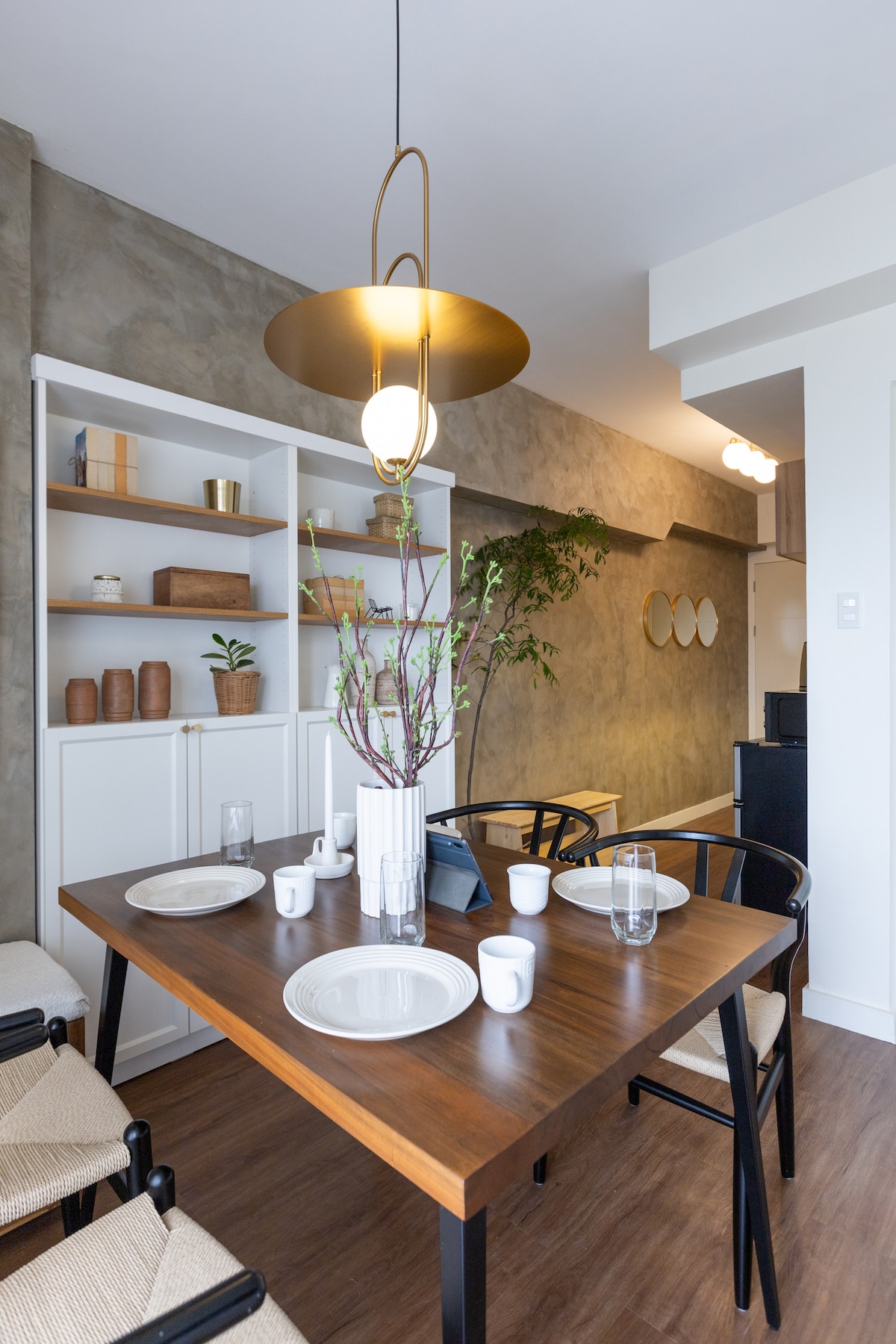 A cozy modern Scandinavian/tropical retreat nestled in the heart of the city. This is a place where you can relax, unwind and have fun with your loved ones or just by yourself. The living area is adorned with light-colored wooden floors, providing a warm and welcoming ambiance. Furnished with simple yet stylish Scandinavian/Tropical furniture. The kitchen is fully functional. Equipped with all your cooking needs. The bedroom’s minimalist design will for sure give you a restful night’s sleep.