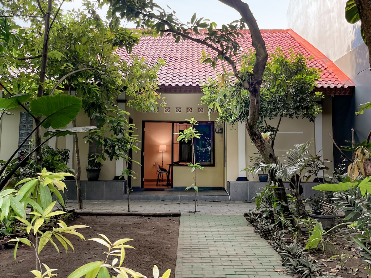 Langenarjan Huis is a charming small house located in the heart of Yogyakarta city. It's just a 3-minute walk to the "Alun-Alun Selatan".Nestled within the Yogyakarta Kraton fortress,this house offers a unique traditional stay experience in a peaceful atmosphere. The location is being close to Wijilan area, known for its delicious Gudeg Yogya.The house is fully equipped with 2 bedrooms, a kitchen and a bathroom with a water heater. Your trip to Yogya will be a memorable and enjoyable experience.