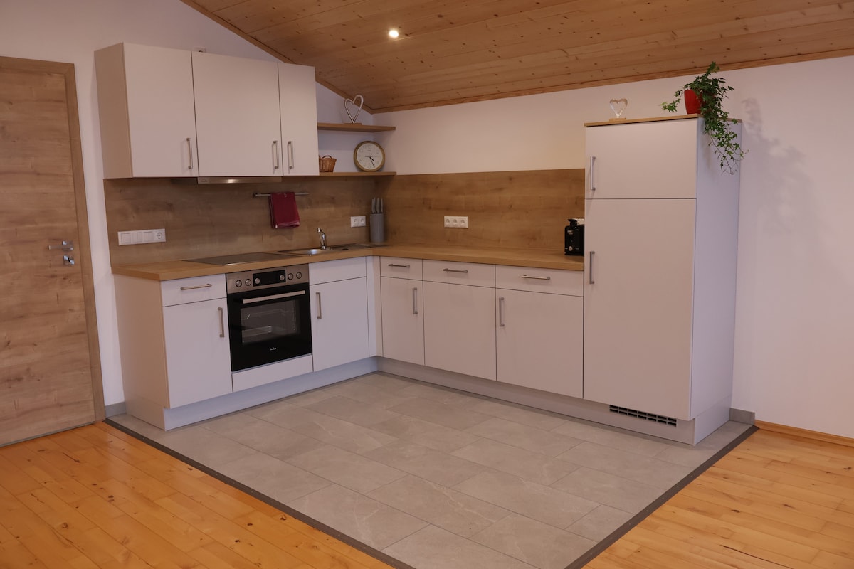 Stylish restored old barn in a stunning secluded location, offering 120 sqm of space with panoramic views of the countryside, a 50 sqm gallery with large windows, an infrared cabin, a walk-in shower, a bathtub, a luxury designer kitchen, terrazzo marble flooring with electric underfloor heating, a historic tiled stove from 1700 and a fenced garden for as many dogs as you like. A dream just 15 min. from Passau, 3 min. from the motorway, and 10 min. from the Danube. Bookable from Nov 2025