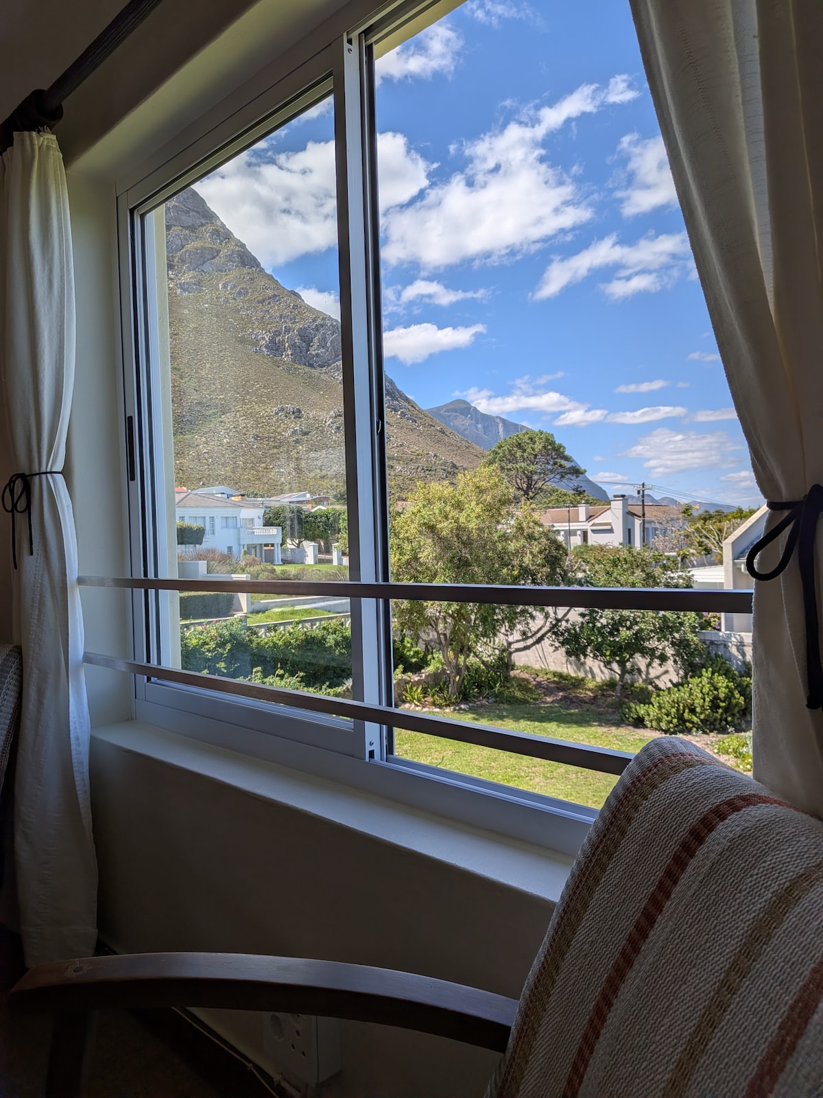 N.B. PLEASE NOTE: Strictly no children under 12 yrs or pets. Stylish self-catering 3-bed apartment on the cliffs with magnificent views of Walker Bay and the mountains. Shops, restaurants, pubs, etc all within 5- minute walk. Secure underground parking, fully equipped kitchen, furnished balcony, TV, DSTV, fast and reliable wifi. The space Bedroom - Master King size bed, balcony access, en-suite bathroom Bedroom 2 Queen bed, shared bathroom Bedroom 3 Twin beds, shared bathroom