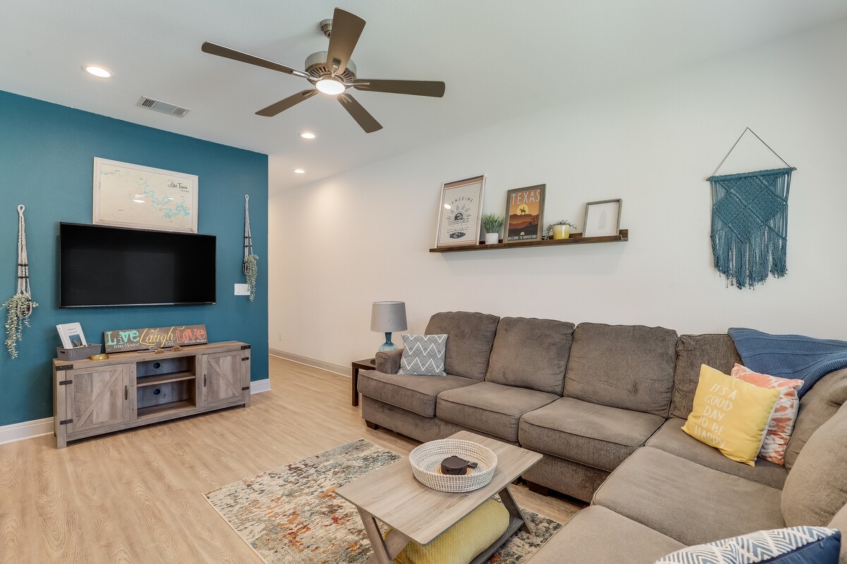 3 bedroom/2 bathroom spacious condo on the second level with a community elevator, with a patio and views of the water. Great for entertaining with and golf cart provided with your stay. Escape To The Hollows is a quiet, relaxing home away from home with beautiful Texas views. Completely renovated to give a peaceful, modern feel. Great amenities and a short golf cart drive to the lake. #escapetothehollows
