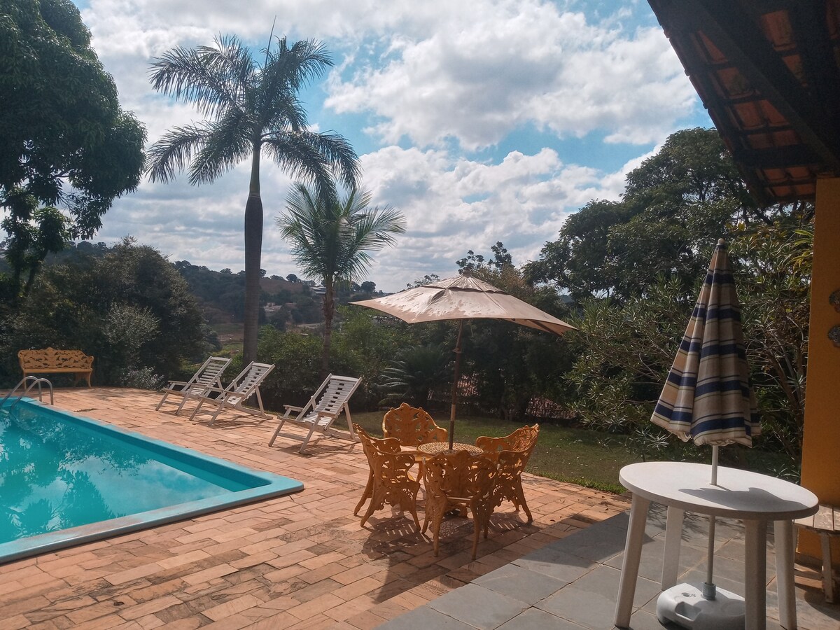 Country house with 3 bedrooms (two suites), main bathroom and large living room with fireplace. 7,000 m2 green area with complete leisure facilities: swimming pool, children's pool, sports court, hammocks, sun loungers and parasols. 30km away from Belo Horizonte, 2km from Cidade do Galo, with easy paved access up to the entrance. BONUS * Discounts from 3rd day (5%), 5th day (10%), 7th day(15%) * Children are charged only when older than 10 * Check-in from 12pm; check-out up to 4pm