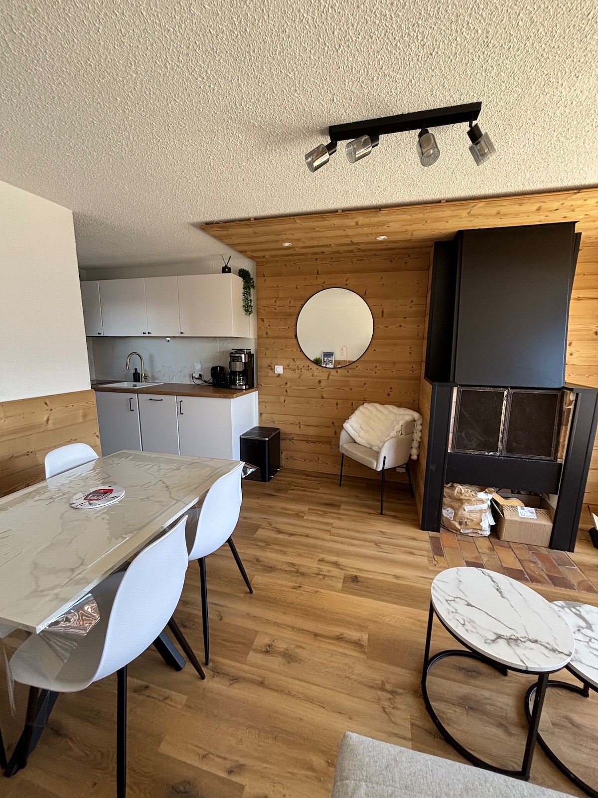 This luxury flat, located in the heart of the village of Peisey Vallandry, has a breathtaking views of the Bellecôte mountains. A few steps away from the Vanoise Express ski lift linking La Plagne to Les Arc, we welcome you to France's third largest ski area. You'll love admiring the mountains from master bedroom bath. A fireplace is available in the property to warm up the winter evenings.