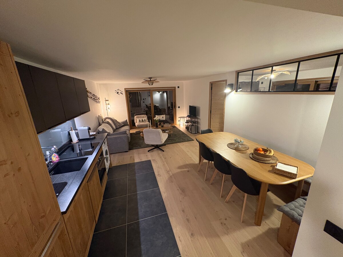 Enjoy this beautiful, warm, ultra-comfortable apartment completely renovated in a beautiful mountain chalet. Located in the village of Nancroix, you will enjoy the wild and natural side of the valley floor and enjoy breathtaking views of the valley mountains. Composed of a large living-dining room, fully equipped kitchen and warm bedrooms. Come and recharge your batteries in this place where calm and tranquility will accompany you throughout your stay.
