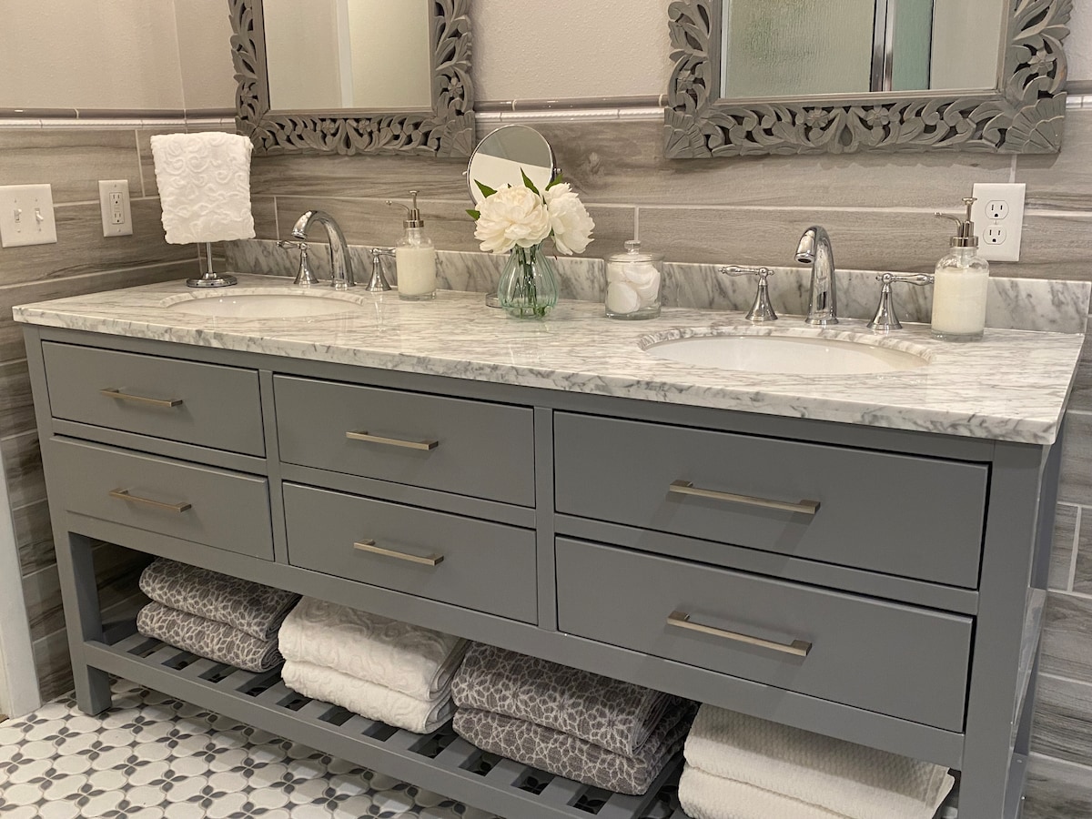 The Prayer Cabin is located at Lake Red Rock outside of Pella, IA. The cabin Is an Earthen/Berm home located on a 1 acre lot in a quiet & clean neighborhood. The lot boasts a wooded valley with many birds and squirrels to watch. The Prayer Cabin was recently remodeled with a brand new kitchen and bathroom. Our first guests asked us if Chip and Joanna were the creators of the design. 💚 Navy Blue cabinets, Tons of white shiplap and open shelving. Peaceful. A place of respite and relaxation.