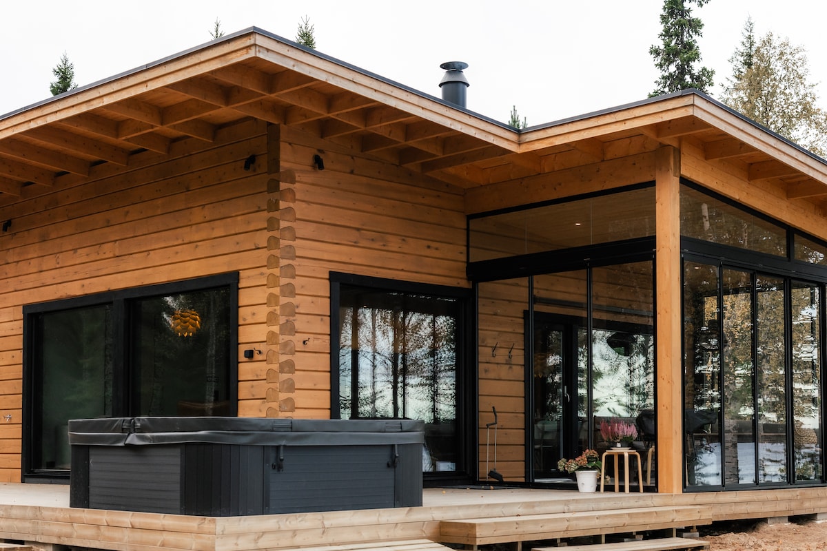 Welcome to relax at Ruska Chalets, located on the beautiful banks of the Kemijoki River, just a 20-minute drive from the center of Rovaniemi. This spacious and cozy villa accommodates up to 10 people. In the yard, you can relax in the warm outdoor hot tub and enjoy evenings by the firepit. The natural beauty of Lapland, the Arctic Circle, and Santa Claus are all within easy reach.ou are welcome to spend your holiday at Ruska Chalets. You find us IG: @ruskachalets