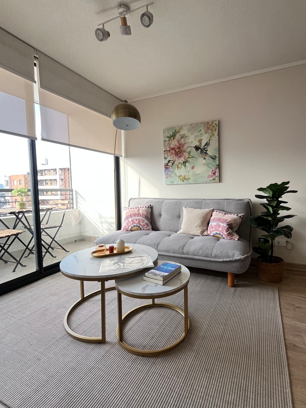 Enjoy a modern space full of details in La Florida. This 1 bedroom/1 bathroom apartment is in front of the Plaza Vespucio Mall and steps from the subway, ideal for resting, working or a weekend getaway. Equipped with everything you need: a full kitchen, fast WiFi, a terrace, TV, and private parking. Perfect for couples or discerning travelers seeking comfort, style, and a good location.