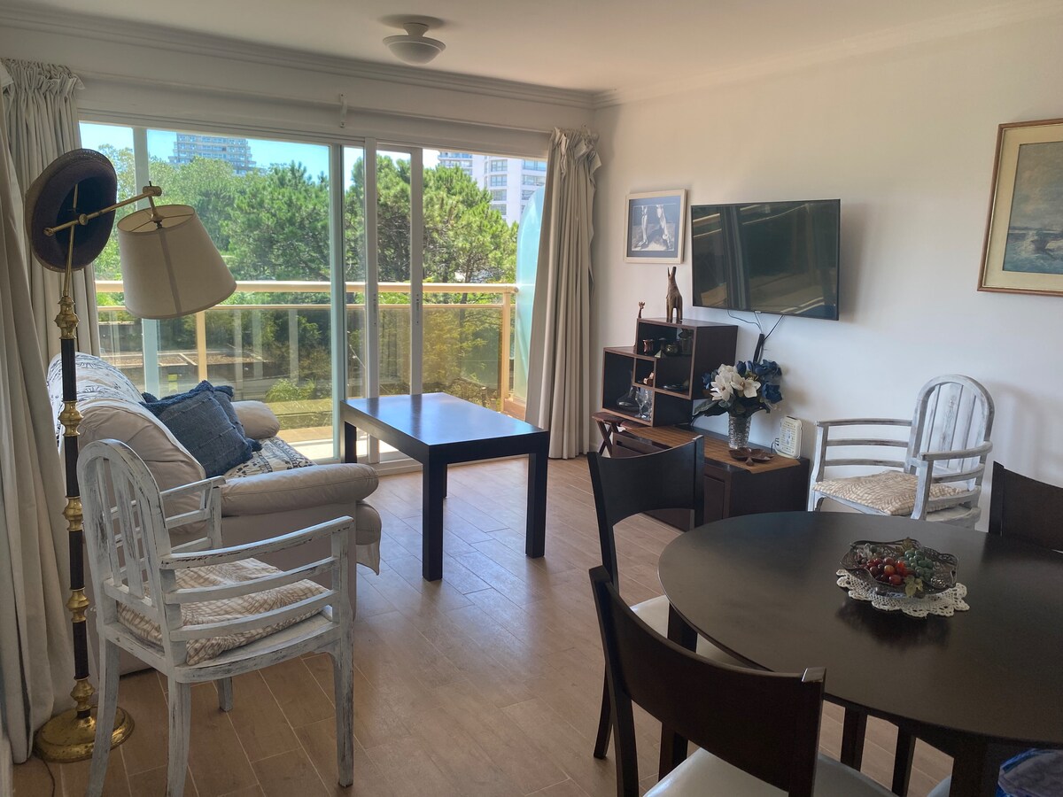 Divino y soleado apartamento, cercano a todo, ubicado en un entorno tranquilo, a 100 metros de la playa Brava y 10 minutos caminando de la playa Mansa, de los Casinos, a 15 minutos caminando del centro, 10 minutos del shopping y de la terminal de ómnibus. Cuarto piso con ascensor.