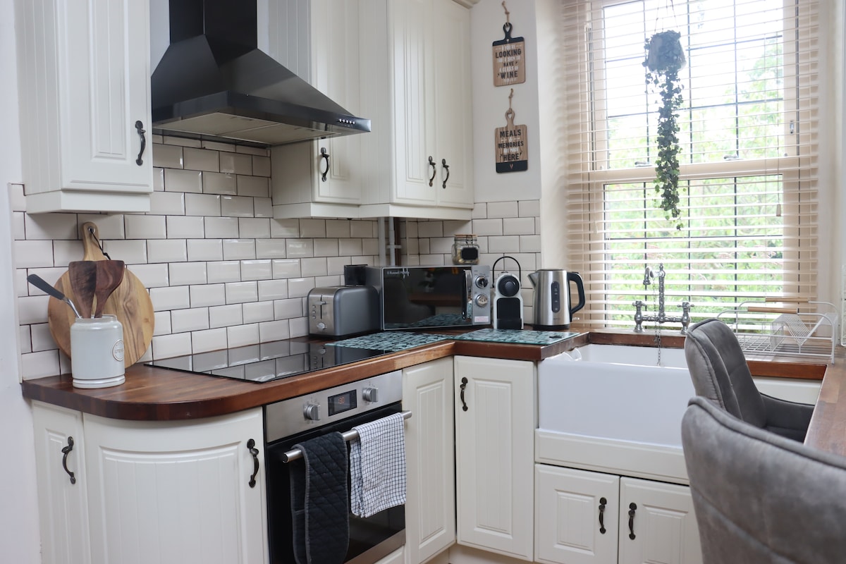 A cosy, well equipped apartment for up to 5 guests on the ground floor of an old corn store building. Lovingly converted in 2016. The accommodation includes a private entrance with parking for 2 cars, a private garden with romantic entertaining space and direct access to Pingle Cluck where you can collect eggs! The farm sits in an enviable location surrounded by fields yet within walking distance to the shops, cafes and restaurants. We accommodate dogs and we own our own private dog park.