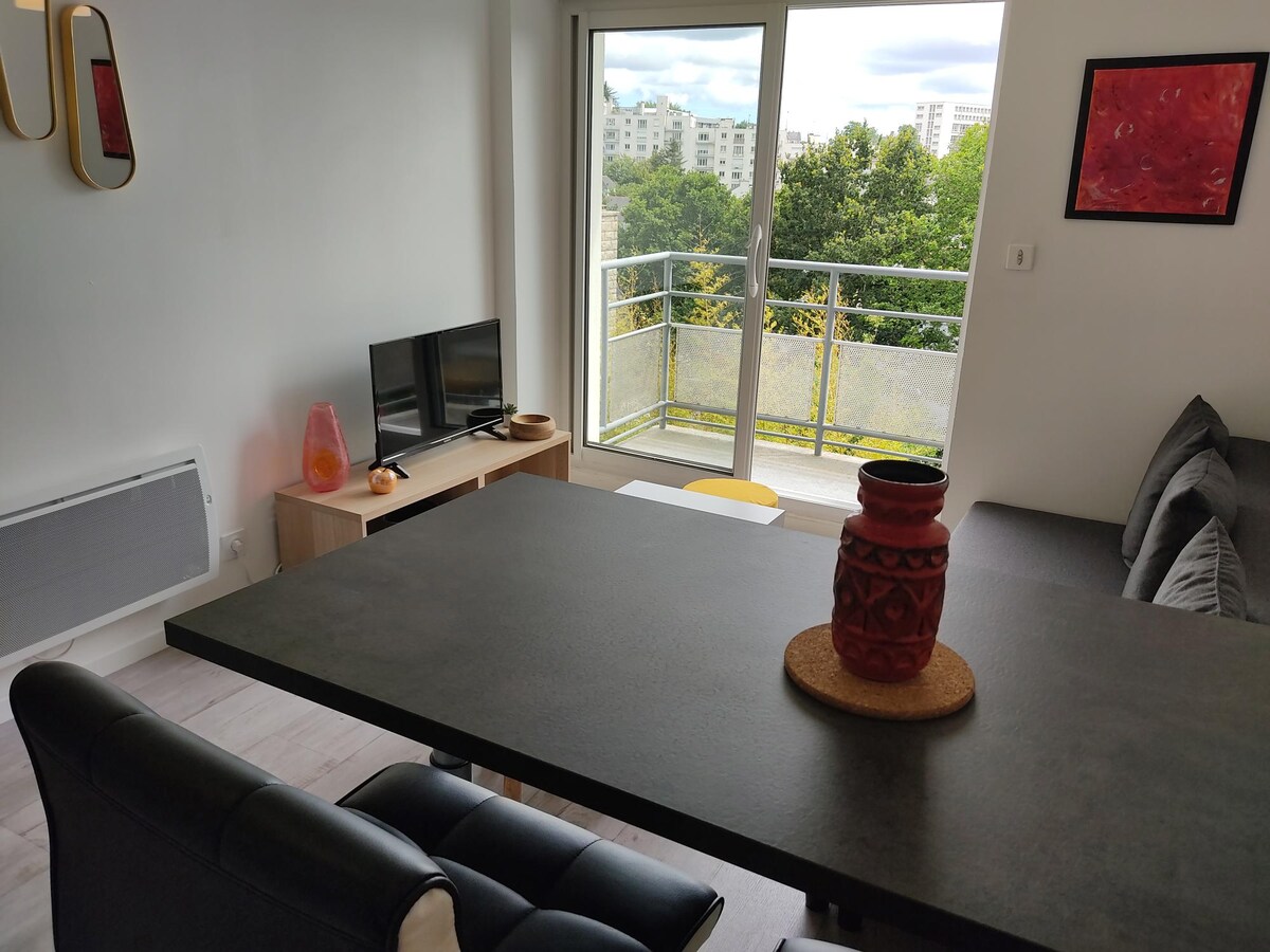15 m² studio, close to the city center and riverside, with a view of the Locmaria neighborhood. Located on a quiet street, it offers everything you need for a comfortable stay: a fully equipped kitchenette (sink, electric cooktop, refrigerator), TV, private bathroom with shower, toilet, and washbasin, and a 160x200 sofa bed. !! Venetian blinds for light control (no shutters). Perfect for business trips or internships, with self-check-in via a key box.
