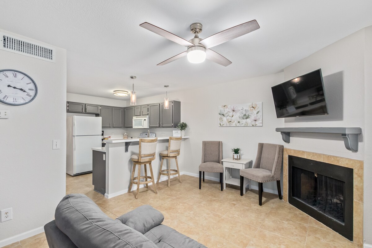 Step into the newly renovated Chateau on Rose Garden, a 3-bed, 2-bath home with a loft in North Phoenix. Discover modern comforts indoors, with vaulted ceilings, a sleek kitchen, and a loft workspace, the perfect blend of style and functionality. The quaint and unique backyard, complete with a fire pit, dining table, and various seating options throughout, creates a relaxing oasis to savor the delightful Arizona weather. Welcome to your serene home away from home at Chateau on Rose Garden.