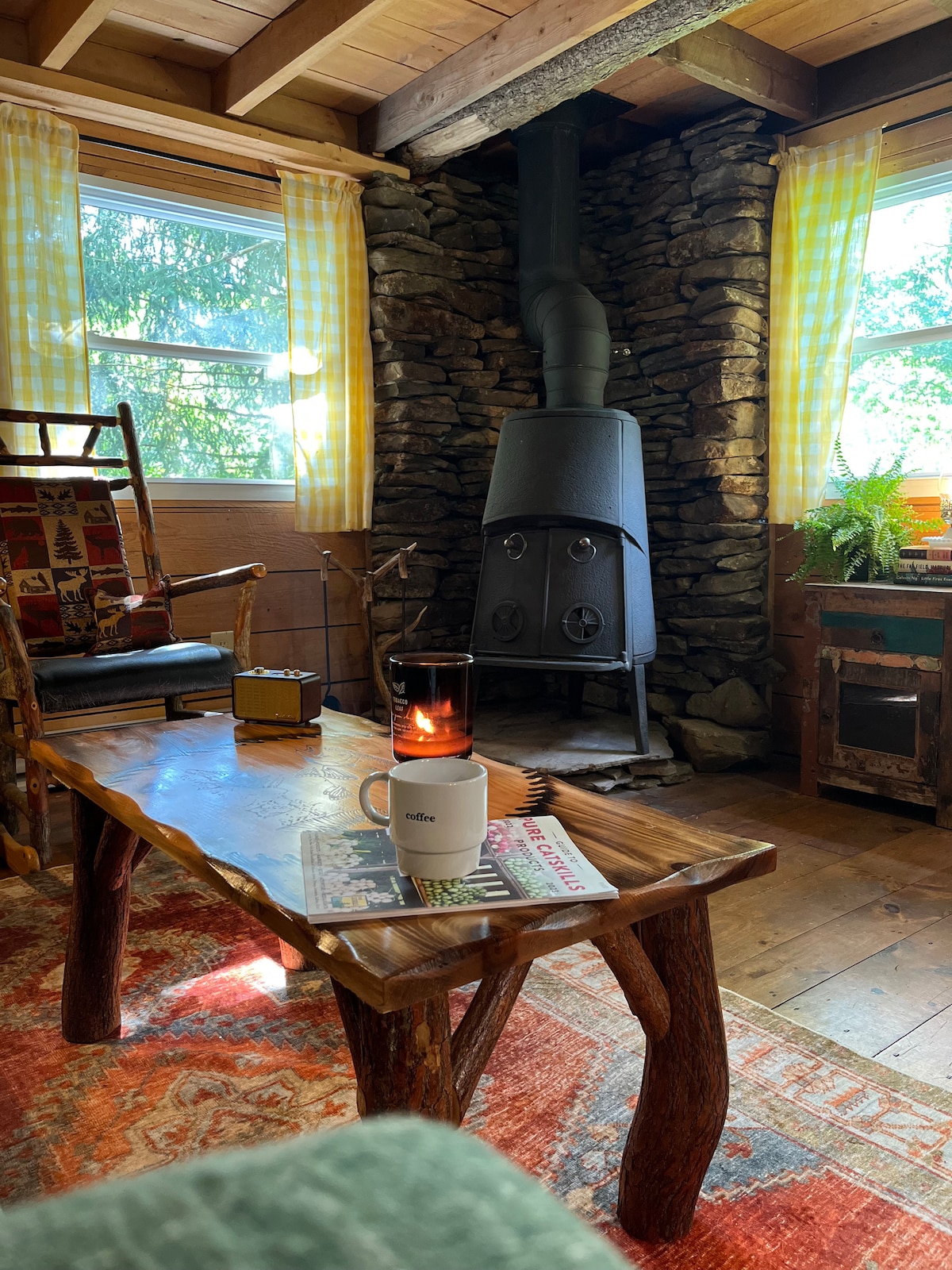 Enjoy nature in style at this fairytale in the forest. This idyllic escape combines whimsical structures, curated gathering spaces and a private wooded hillside surrounded by hiking trails and quaint towns. Disclaimer: This is a rustic cabin. Heating is from a wood-burning stove, there is no AC. The bath house is a separate structure from the cabin, up a hillside with stone steps. Cooking is via charcoal grills, small outdoor kitchenette or fire.