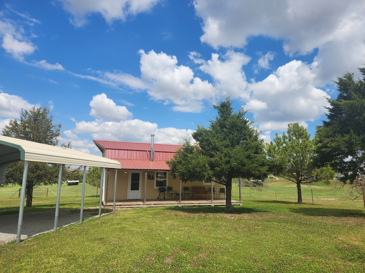 Welcome to the Cabin of Sunset View where it is minutes from OSU, the Fairgrounds, and the many activities of Stillwater. Centrally located, it's an easy drive to Guthrie, Edmond, Oklahoma City, and Tulsa. After a day of exploring Stillwater or surrounding areas, you will relax in the quiet peacefulness of country living. Surrounded with trees and a large meadow gives a balance of seclusion and openness making this a relaxing place to stay!