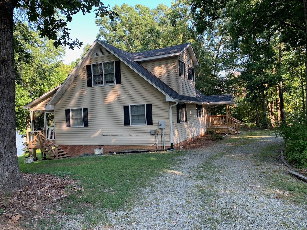 Waterfront home on MAYO LAKE. 2 Bd, 1.5 bath fully furnished . Wi-fi, Smart TVs, Alexa, frig, stove washer/dryer, microwave. Queen-size bed, sleeper sofa and bunk bed. Wrap around porch w/ rocking chairs, swing and 2 picnic tables. Large yard for playing, just feet away from the water and dock, hammock and fire pit. Lots of fishing, single kayak, 2 person kayak, canoe and 2 paddle boats available. PERFECT FOR ANY SEASON LONG OR SHORT STAY. Located on Mayo Lake in Roxboro, NC