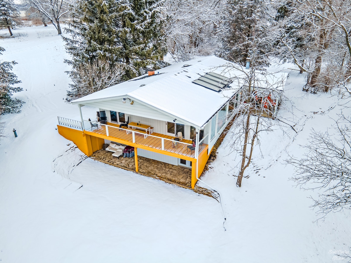 With panoramic views of the lake, you’ll love the stunning sunsets, private beach, pier, and kayaks. Experience outstanding fishing and walk to downtown for restaurants, bars, shopping, theater, and concerts in the park. Skiing at Wilmot/Vail is just a short drive away. Inside, unwind by two fireplaces, three TV screens, or play a game on the pool table. The large wet bar and expansive kitchen are perfect for gatherings, with additional space in the dining areas, private office, and gym.