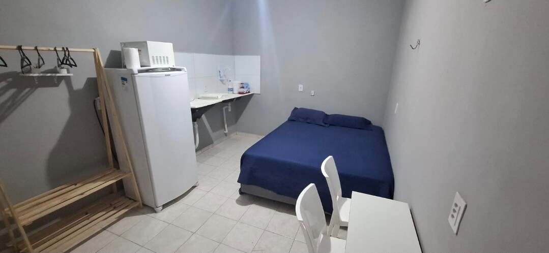 Central studio apartment, close to several shops that you can walk to, such as Bars/Restaurants, Gas Stations, Colleges, supermarket, gyms, bakeries, laundry, etc. Safe apartment facing the Military Police battalion and with a camera system in the external areas of the building Close to Unimed Hospital, Downtown, Forum, Shopping Mall and Waterfront The kitnet has air conditioning, a queen-size bed, a smart TV and a full kitchen for preparing meals. Garage with 8 parking spaces