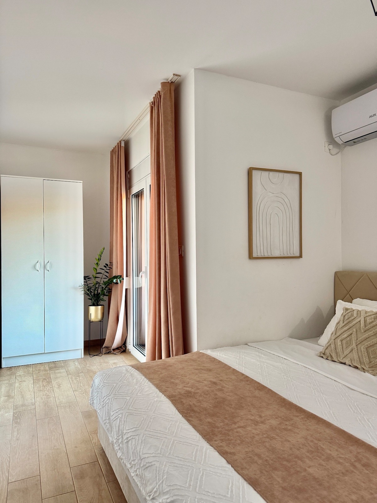 Fully furnished with modern interiors brand new apartment in the hearth of Budva! Within walking distance of day & nightlife options. Exclusive restaurants, cafes, supermarkets, night clubs, 4-minutes walking distance from waterfront promenade/beach. In the middle of all actions but just far enough where it won't affect your SLEEP. Enjoy beautiful views of the sea and the city of Budva from the private balcony. THIS IS THE PLACE TO STAY.
