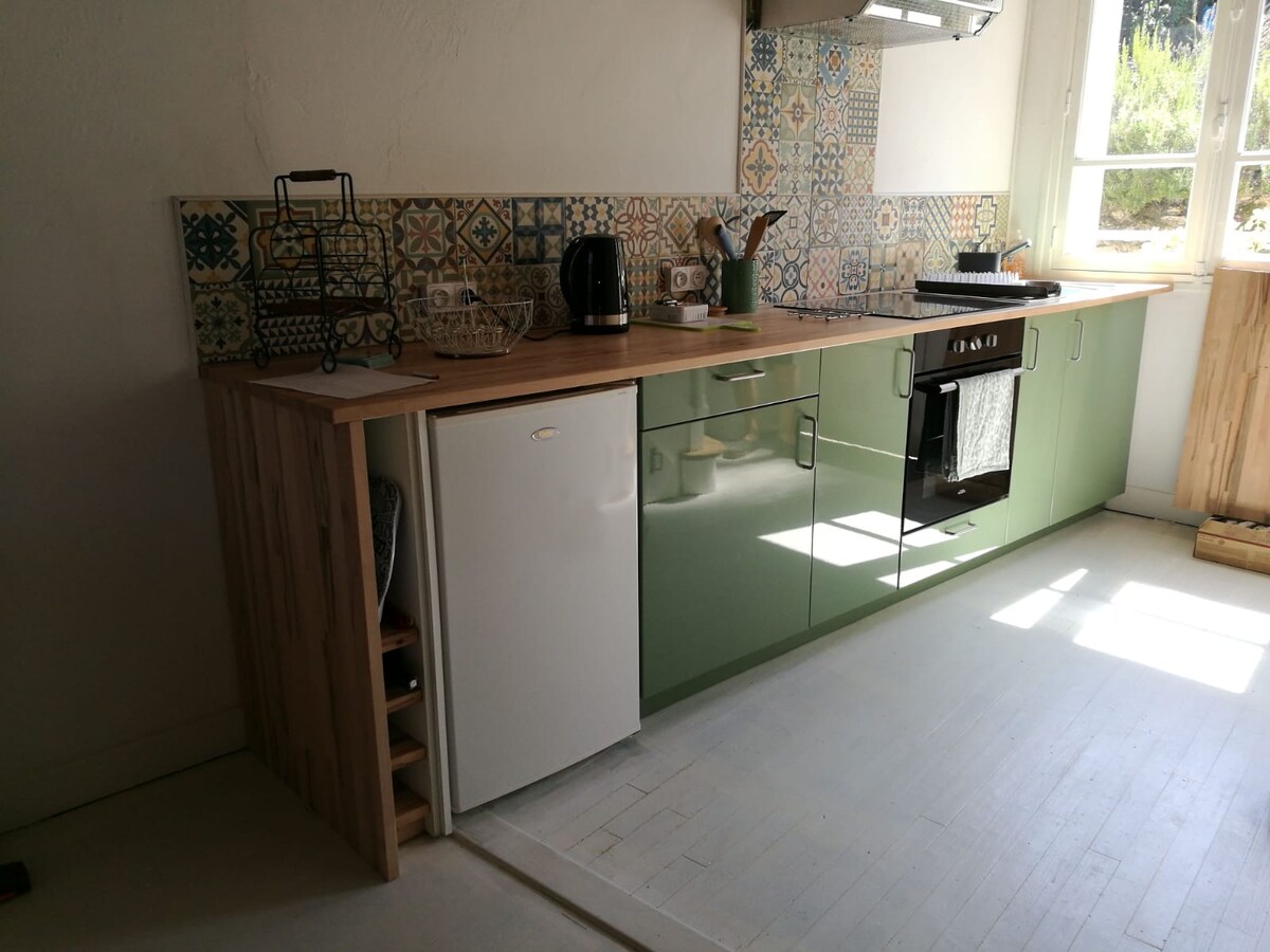 La Nuit Claire, an ideal haven of peace for nature lovers, couples, teleworkers or anyone looking for tranquility. This independent accommodation of about 35 m2, completely renovated and located at the gates of Bellac (1 km), offers you all modern comforts in a warm and soothing atmosphere. - Absolute quiet at night - Well-equipped kitchen for independent stay - Garden with seating area - Modern bathroom and PRM - Private parking, independent entrance