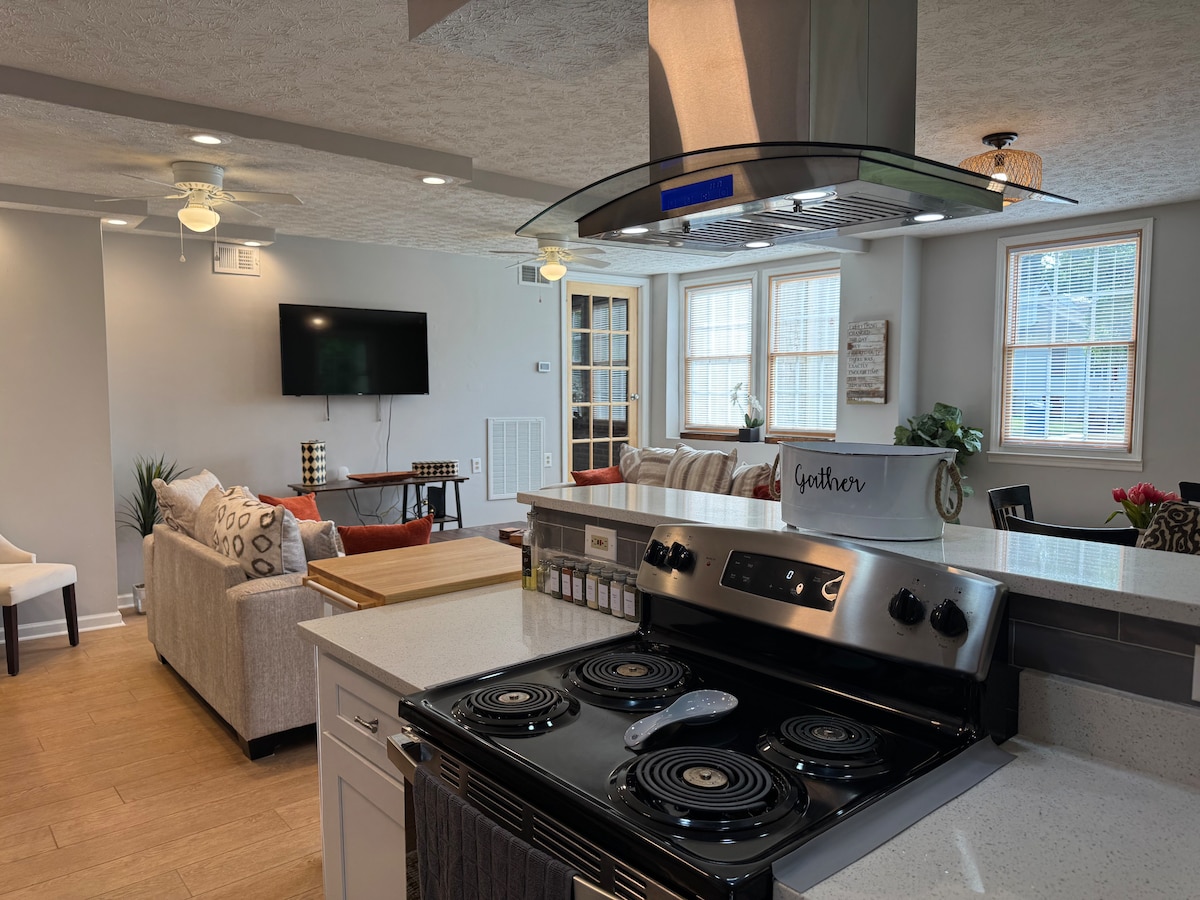 Experience a bit of history in the newly restored Illges Carriage House! It's the best of both worlds: renovated modern living meets historic charm located just 2 blocks from the best local dining, outdoor adventure, and everything else Uptown Columbus has to offer. Large king bed and queen sleeper sofa,Brand New Full Kitchen, rain-shower head and even more luxuries. The Carriage House is made up of two separate apartments, both of which can comfortably sleep 4 guests.