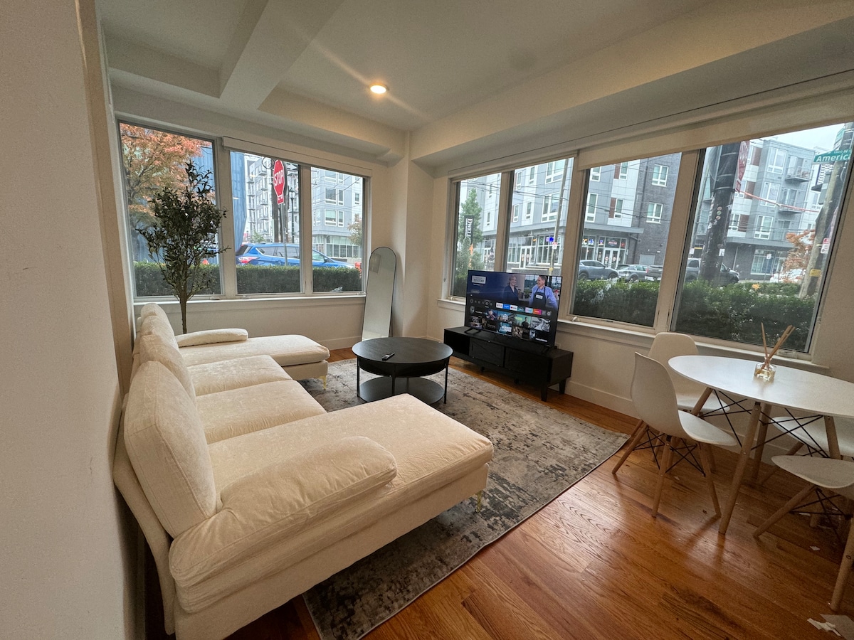 Enjoy this nonsmoking, newly renovated full kitchen and bathroom with quartz countertops. Adjustable tempurpedic bed w lumbar, vibration, under bed lighting, and Ritz Carlton pillows and Hotel Collection bedding will put you in the clouds. Near Boeing, airport (10min) and train station 10 min walk. This is a great quiet place to work from. Apartment is private with a nice (motion detected) lighted brick and concrete path to entrance w patio around back. No stairs. Must be a non smoker!