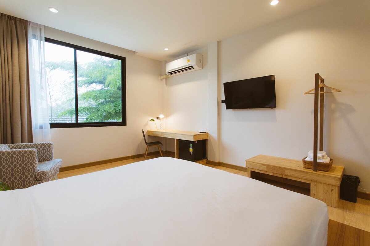 Welcome to our luxurious Deluxe Room located in the heart of Phrae, Thailand! Experience comfort and elegance in a room designed to cater to all your needs, whether you're traveling for business or leisure.
