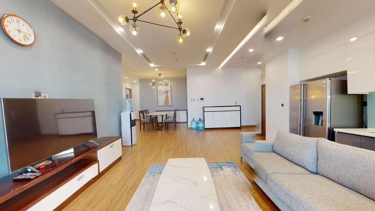 The apartment is designed with the idea of a painting gallery placed in the clouds. Romantic and fairy tale ideas are realized in this apartment. With a classic architectural style combined with a 270-degree wide viewing angle, the apartment is like a real fairy tale in the heart of the city: romantic, beautiful view, giving you a gentle, quiet feeling like a fairy tale.