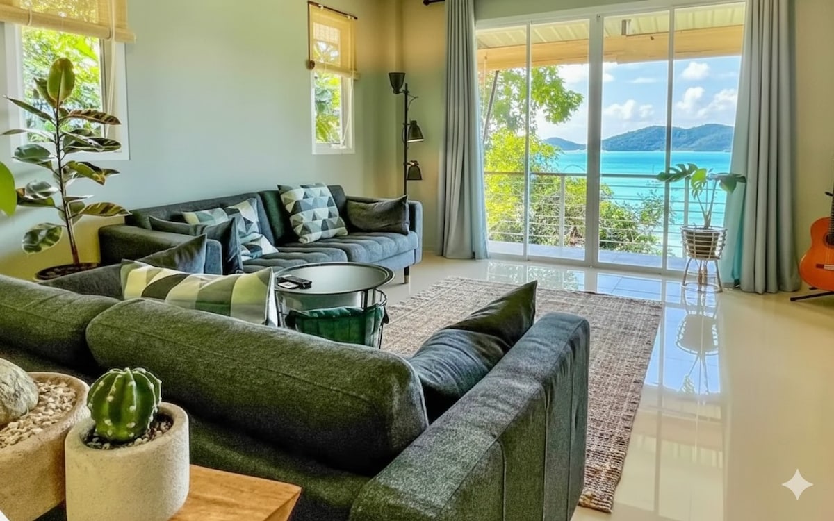 Welcome to your dream destination in Phuket! This high-end vacation home offers an unparalleled experience with its 360-degree panoramic view of the stunning Andaman Sea Perched atop a cliff, this luxurious villa provides breathtaking vistas from every angle, ensuring that you are surrounded by natural beauty of Thailand's most picturesque island - Beach access - 5-10m walk to Rawai beach - 1 king, sofa bed, mattress - A/C bedroom & kitchen, open-air living room, 2 bath - Panoramic balcony