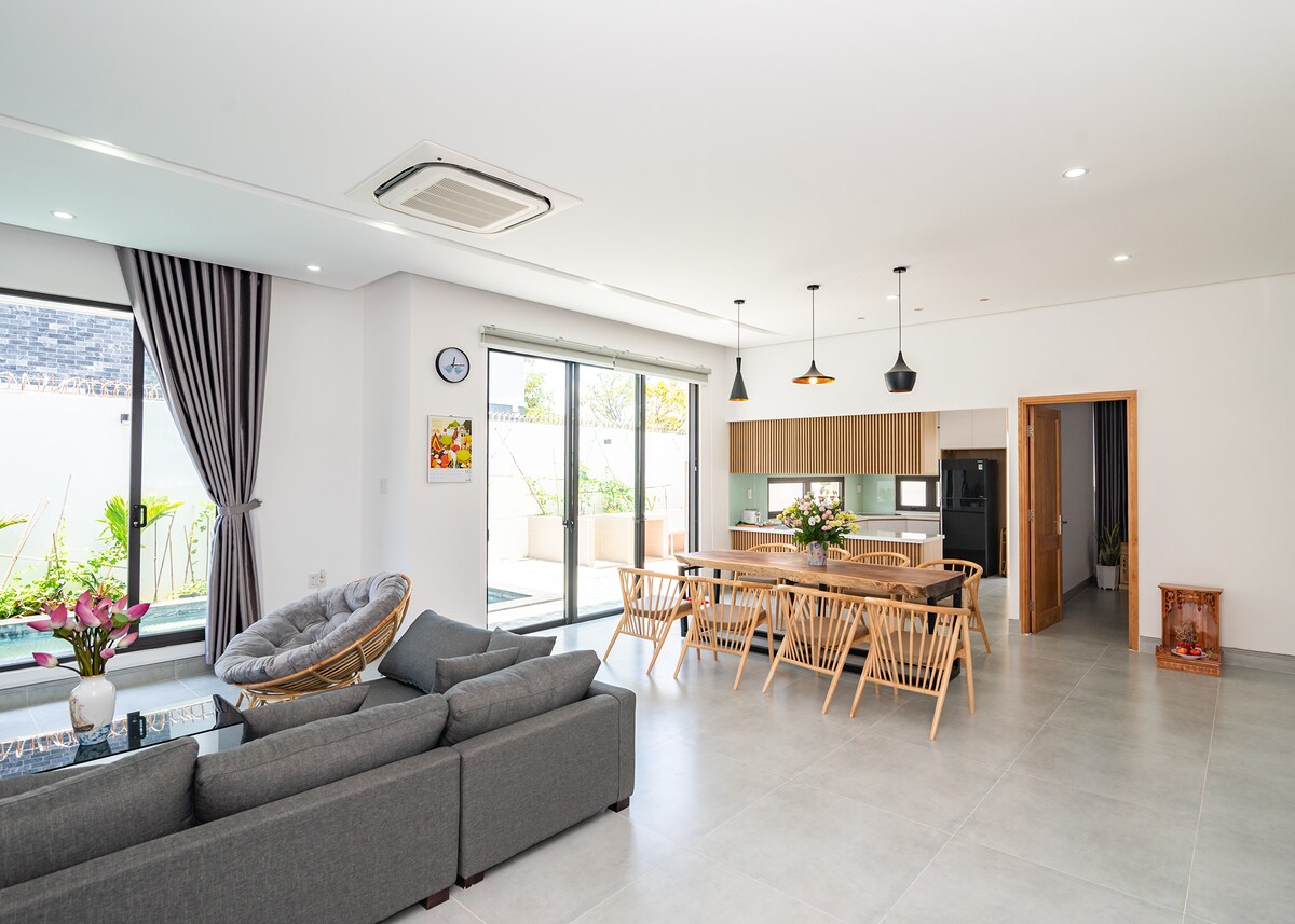 The villa is designed with 3 comfortable bedrooms, private entrances, private bathrooms, a living room, and a spacious BBQ area. Hopefully, the experience at the Villa will make you feel as comfortable and relaxed as at home. For us, creating a friendly and cozy space where customers can enjoy peaceful moments is always the most important thing.