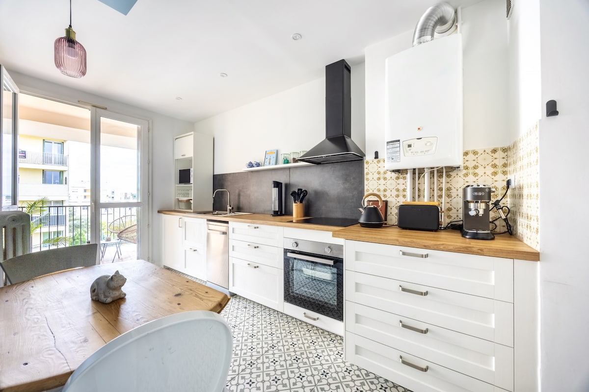 Welcome to Colomiers! Large flat perfect for holidays or business stays. Modern and spacious, this 83m² 2-bedroom flat in Colomiers offers you comfort, tranquillity and proximity to the essentials. Bus L2 at the foot of the building, quick access to Toulouse centre, Airbus and Blagnac airport.