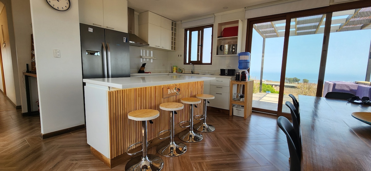 New house on the beachfront, to enjoy with family or friends, located in a condominium with 24/7 security. Spacious and comfortable. Breathtaking ocean views. Accommodates 12 people. Large interior patio protected from the wind with a nice fireplace to enjoy the evenings. Direct access to Pichicuy beach from the condominium, a 10-minute walk to the beach, passing through a protected wetland with a diversity of flora and birds.