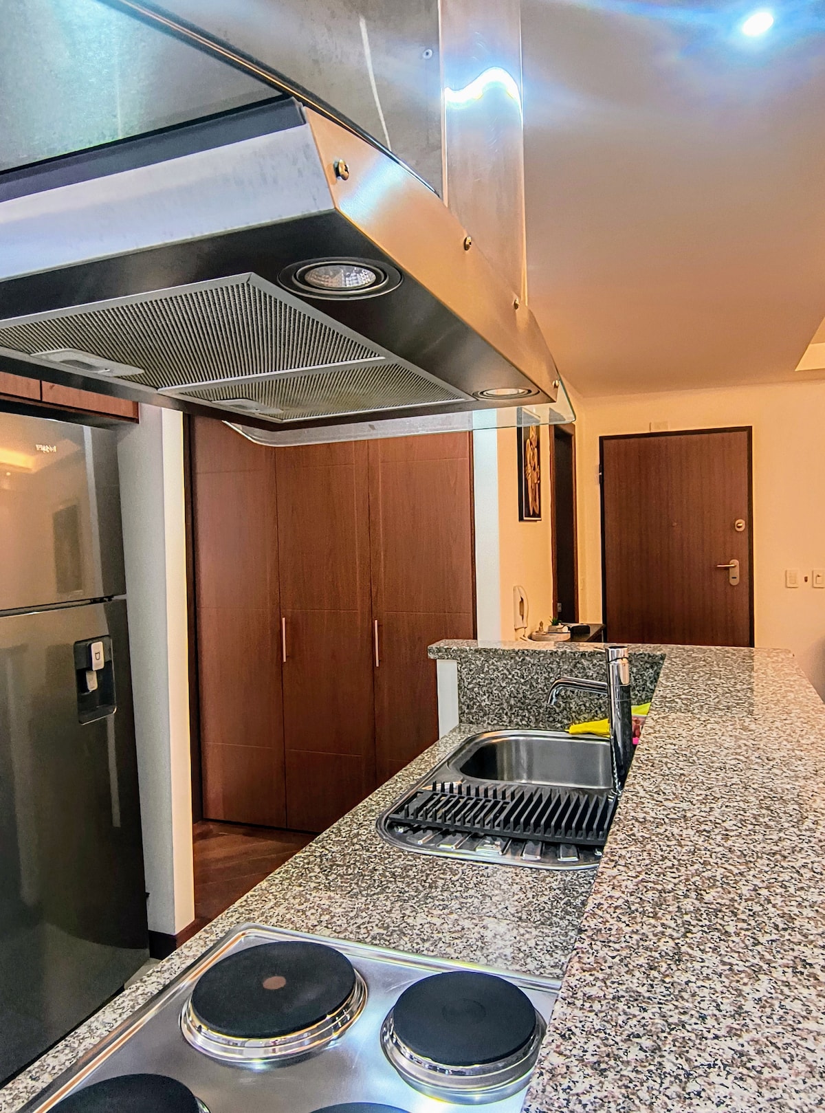 Brand new apartment in one of the best neighborhoods in Quito (Carolina). Walking distance to Carolina Park. Queen size bed, full size sleeper sofa, equipped with kitchen, fridge, microwave, laundry area, 1 parking lot, 24 h. security guard.