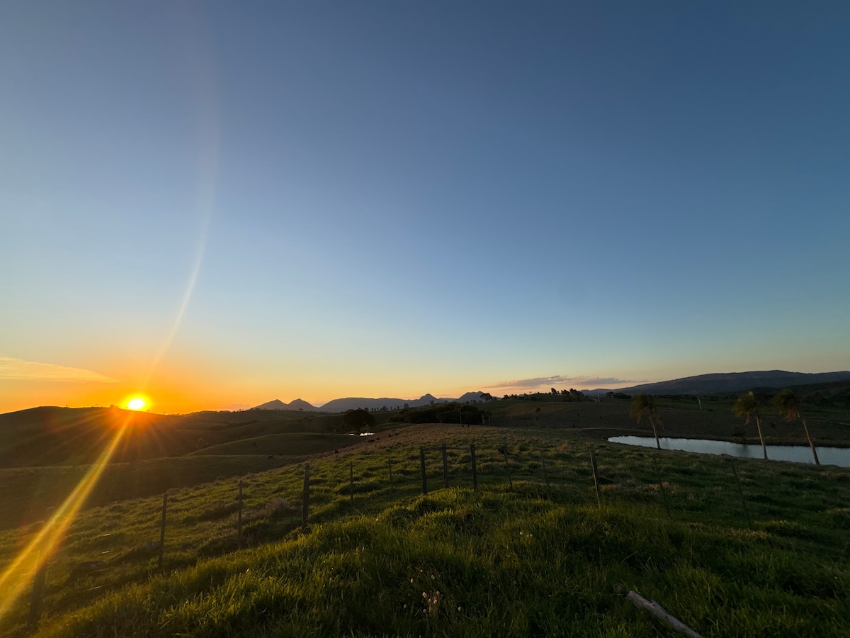 Disconnect from the routine and connect with nature at Sítio Nova Esperança! Stay in a cozy chalet, surrounded by mountains, green landscapes and the fresh air of the countryside. Here, you can relax on our giant swing, watch an unforgettable sunset at the gazebo, and enjoy experiences like horseback riding and sport fishing. Our chalet offers all the comforts for a quiet stay, perfect for those seeking peace and quiet away from the city. Come and live this unique experience.