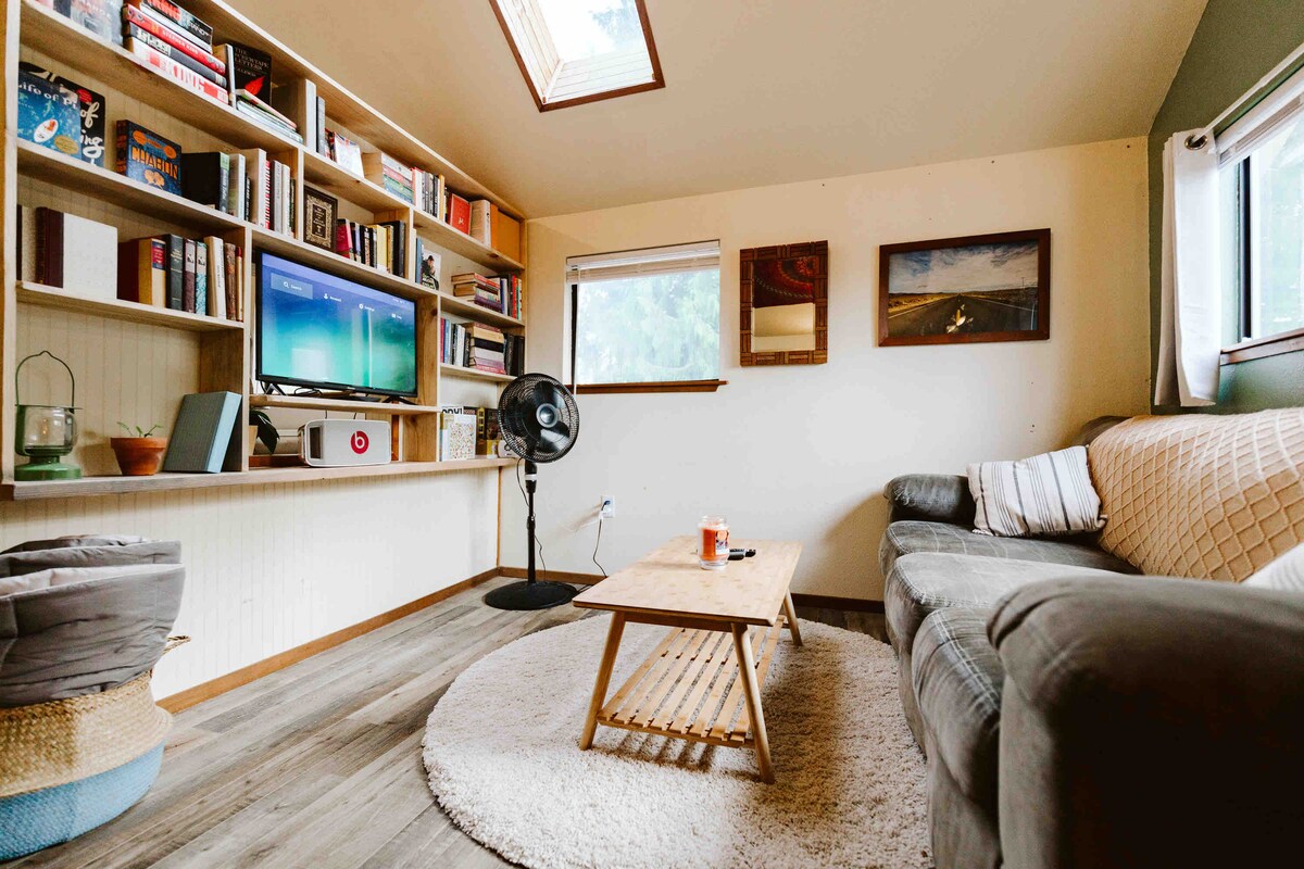 The nook is a private loft apartment with a bathroom, kitchenette, dining area, smart tv, WiFi, private patio, personal entrance, skylights, and nearly a hundred rotating books! This Airbnb was personally renovated by us and transformed from an empty space into a cozy & quirky home away from home. Location: We are 5 minutes from I-5, 10 minutes from a cute downtown Olympia/Puget Sound with local shopping and a farmers market on the weekends, and 1 hour from Seattle.