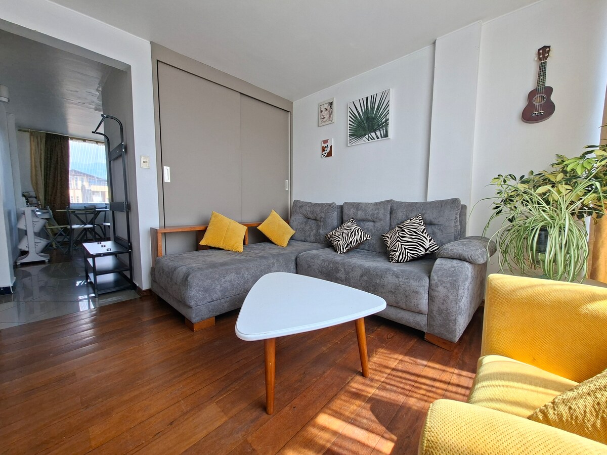 Departamento entero con cocina y sala. Ideal para parejas, o familias pequeñas. El espacio: Sala: Sofá en L amplio y cómodo (apto como cama para un 3er huésped/niño). Cocina: Equipada con refri grande, horno microndas y comedor. Dormitorio: Cama de 2 plazas, closets amplios y silencio. Servicios: Baño privado con agua caliente, WiFi y ubicación céntrica. ¡Siéntete como en casa con la privacidad que mereces!