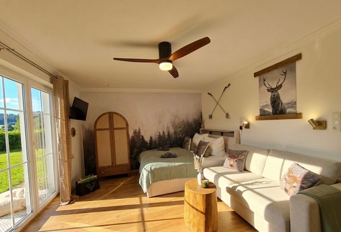 Welcome to the residential station in the Bavarian Forest! Our stylish apartment is located in an exciting former railway building and can accommodate 2-6 people. It is the perfect starting point for activities such as hiking, mountain biking, cross-country skiing and skiing. Enjoy the Drachensee for swimming and the golf course with stunning views. Excursions such as the Flederwisch, Wildgarten and Felsengänge are in the immediate vicinity.