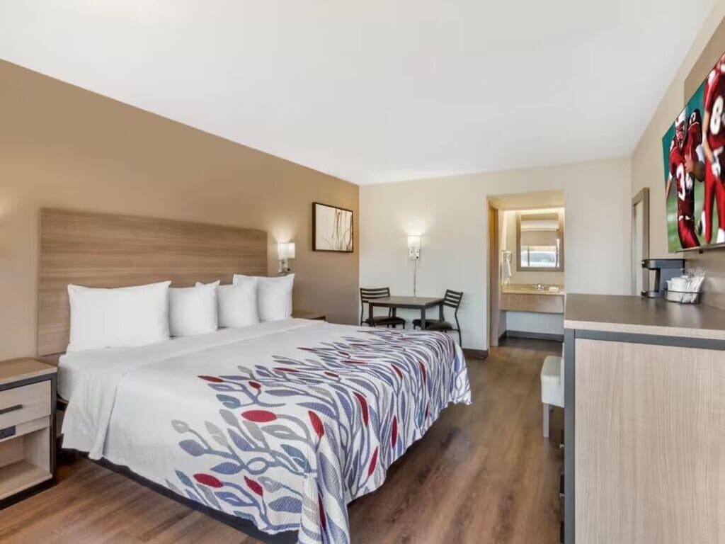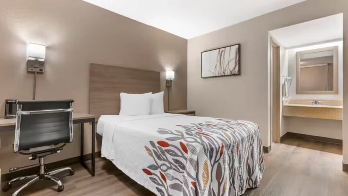 Settle in and stay a while at this clean, budget-friendly king room, perfect for work crews, long-term guests, or road-trippers passing through Tucson. Conveniently located just off I-10, our property makes it easy to get around the city — whether you’re heading to job sites, downtown, or local dining spots. Enjoy a comfortable king-size bed, free Wi-Fi, a flat-screen TV, and an in-room mini-fridge and microwave — everything you need for a simple, stress-free stay.