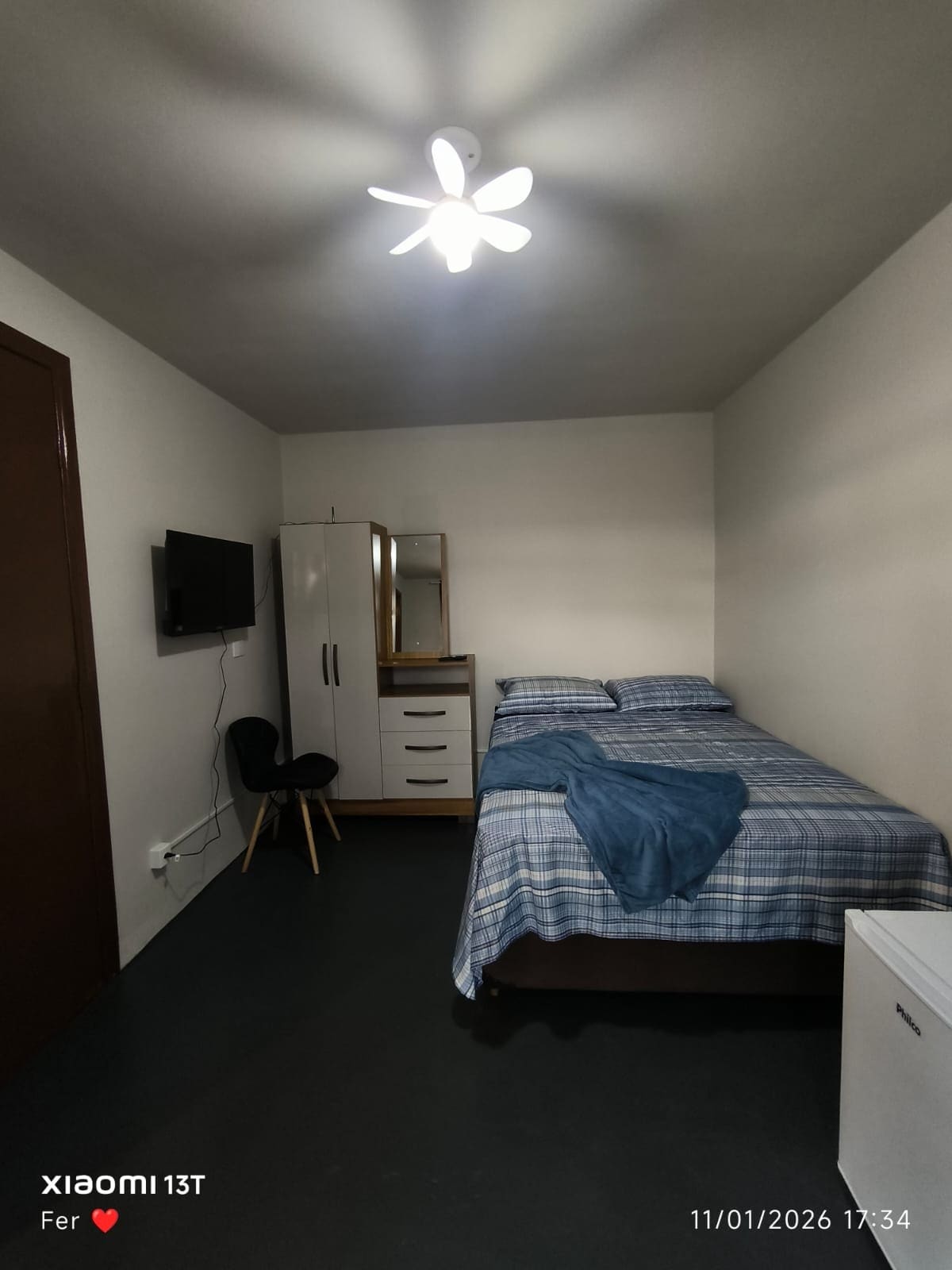 studio aconchegante7 ,ideal para 1ou2 pessoas. suíte arejada bem iluminado,com sacada cama casal confortável,cozinha equipada com microondas, frigobar, cafeteira,utensílios,Wi-fi ,TV smart com Netflix. Ambiente externo seguro monitorado por câmeras Localizado em Pinhais, região metropolitana de Ctba próximo ao Jockey Plaza, Exportrad .Com fácil acesso a comércios. tudo muito privativo. Perfeito para viagens a trabalho, estudos ou lazer. Conforto praticidade e ótima localização em um só lugar!