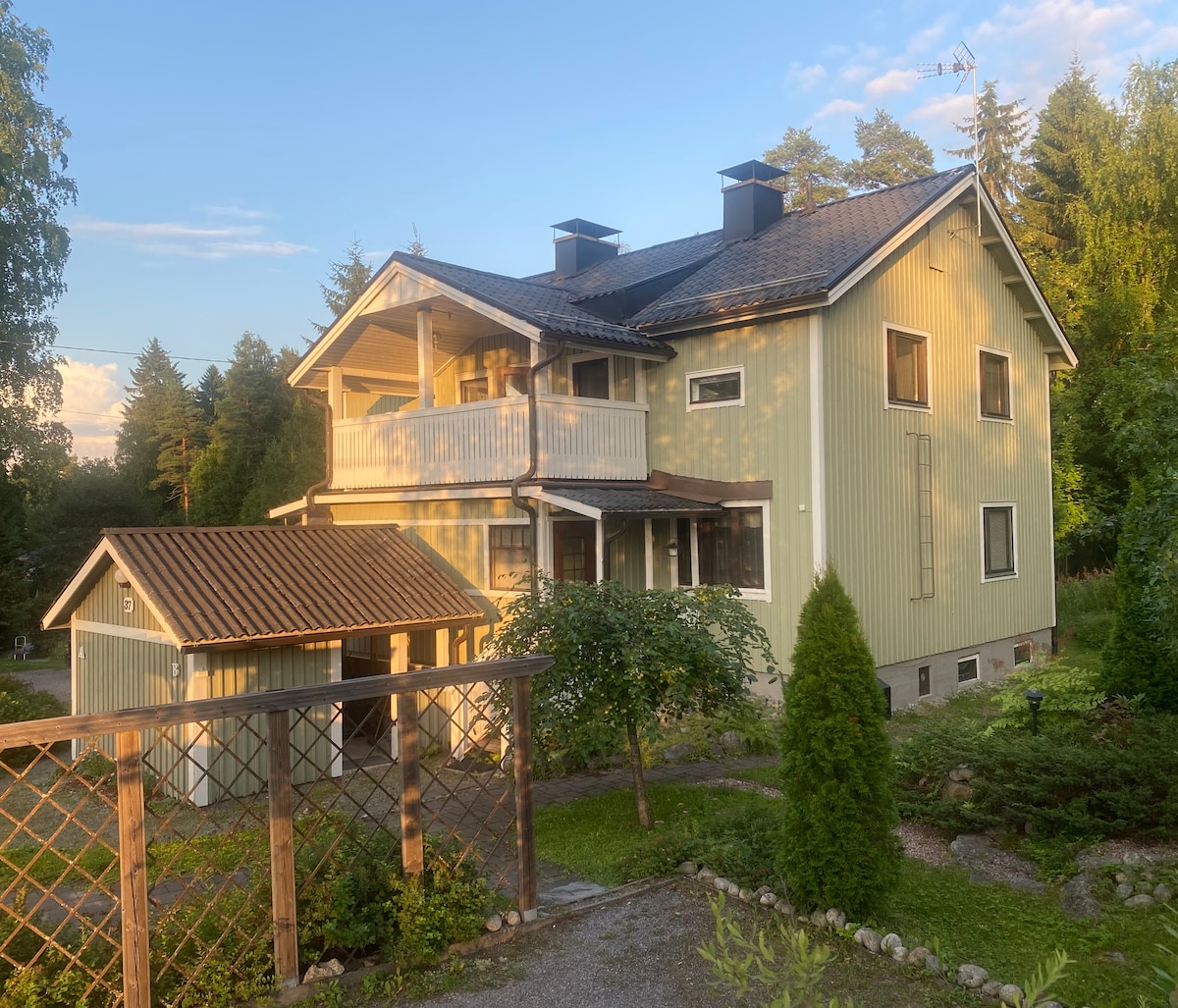 A spacious semi-detached apartment offers space for a larger family or a group of friends. There are 3 bedrooms, one with a double bed and three with single beds. The living room has a sofa bed for two. The lush backyard has easy access to illuminated hiking trails and, in winter, to the ski slope. The quiet front yard is for the tenant's own use. There is a parking space in the yard for a couple of cars. The bus stop (TKL) is 200 m away, Tampere city center can be reached in 20 minutes. We can't accommodate animals due to allergies.