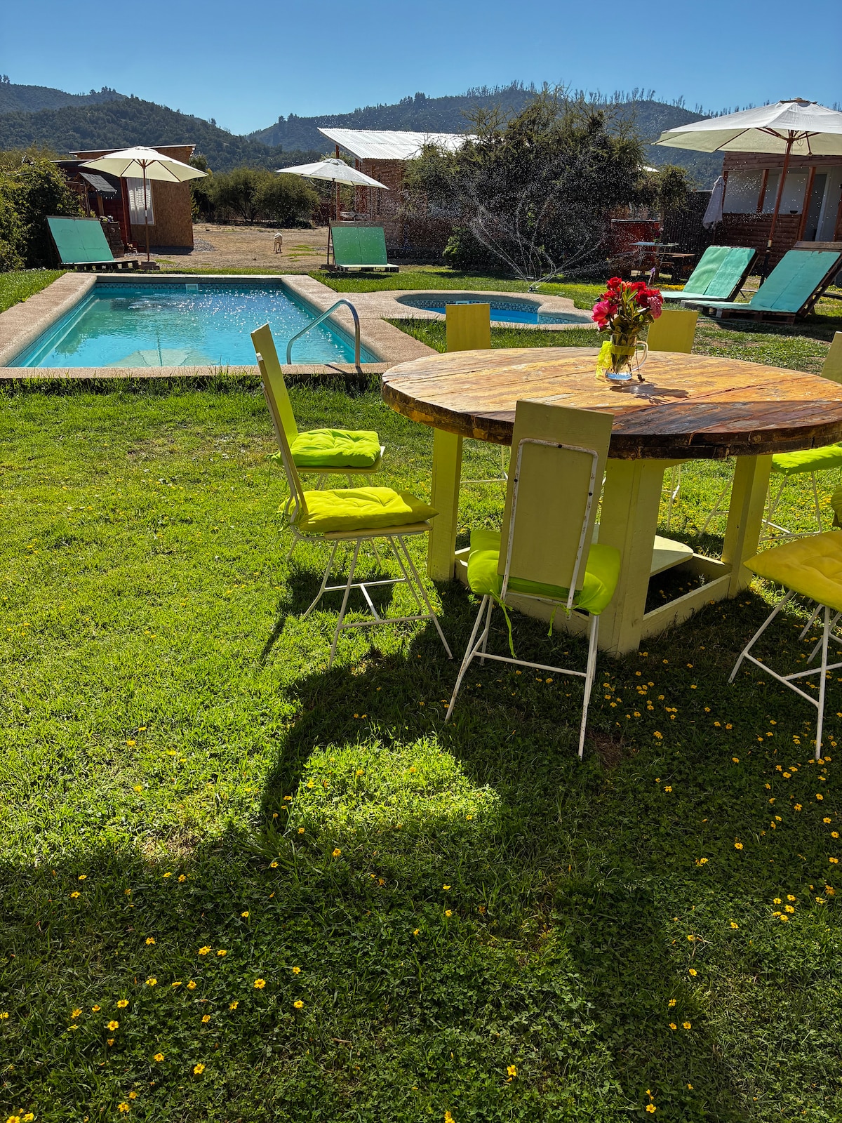 If you want accommodation on the wine route of Maipo Valley, Chile, this location is ideal, private cabin in a family house located on a farm of 5,000 square meters, access to the services you require, laundry, pool and gardens. Preparation of roasts and typical meals, upon request. Located in the village of Alto Jahuel, 38 kms. south of downtown Santiago, mobilization at the door of the condominium. Easy access to vineyards in the sector, even some can be reached by foot.