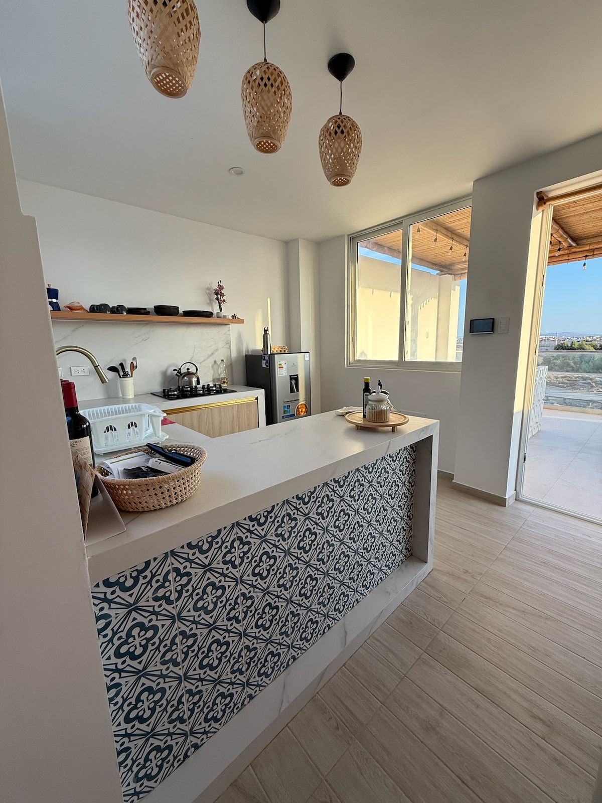 Located in the beautiful and modern Condominio Navigare Paracas, this exclusive apartment is perfect for singles & couples, offering stunning ocean views & proximity to Paracas Reserve. Ideal for kitesurfers, fitness lovers & remote workers. Elegantly crafted by a Peruvian designer, it features a fully equipped kitchen, king-size bed & BBQ. Just 5 min from Kite Point & 1km from the National Park. Enjoy on-site coworking & gym. Make your getaway unforgettable!
