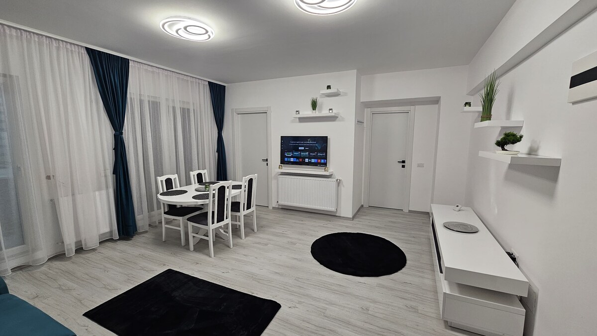 Modern 44 sqm apartment in a quiet, newly built residential complex, Rotar Park Residence 2, just a 9–10 minute walk from Preciziei Metro Station (20 minutes to downtown Bucharest). It includes private parking, fast WiFi, Smart TV, a fully equipped kitchen, 24/7 self check-in, and professional cleaning. Ideal for business travelers, couples, or anyone looking for a relaxing and well-connected stay in the city.
