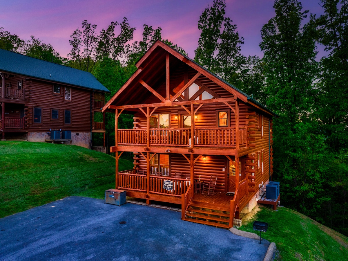 The Diamonds in the Sky - Great Smoky Mountains cabin is a luxurious and peaceful escape with beautiful views. Close to Wears Valley, Pigeon Forge, Gatlinburg, and the Great Smoky Mountains NP. 3 king beds with ensuite bathrooms, 8 twin loft area beds, full kitchen, & indoor gas fireplaces. Hot tub, sauna, theater, pool table, play area, hammock, playground & games. Outdoor fireplace, gas firepit, gas & charcoal BBQs, fast Wi-Fi, ample flat parking. Clean air, star-filled nights, amazing views.