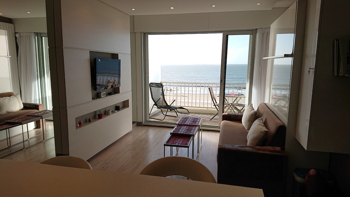 Luxury 40 m2 apartment located 5 minutes' walk from Benoît beach in La Baule. It has stunning views of the Pouliguen marina. It consists of a bedroom with double bed and dressing room; a living room with sofa bed for 2 people, a fully equipped kitchen; a bathroom with shower, toilet and washing machine/dryer; a loggia with sitting area and dining table. Free and easy parking around the building Rental of 1 canoe possible on site, ask me