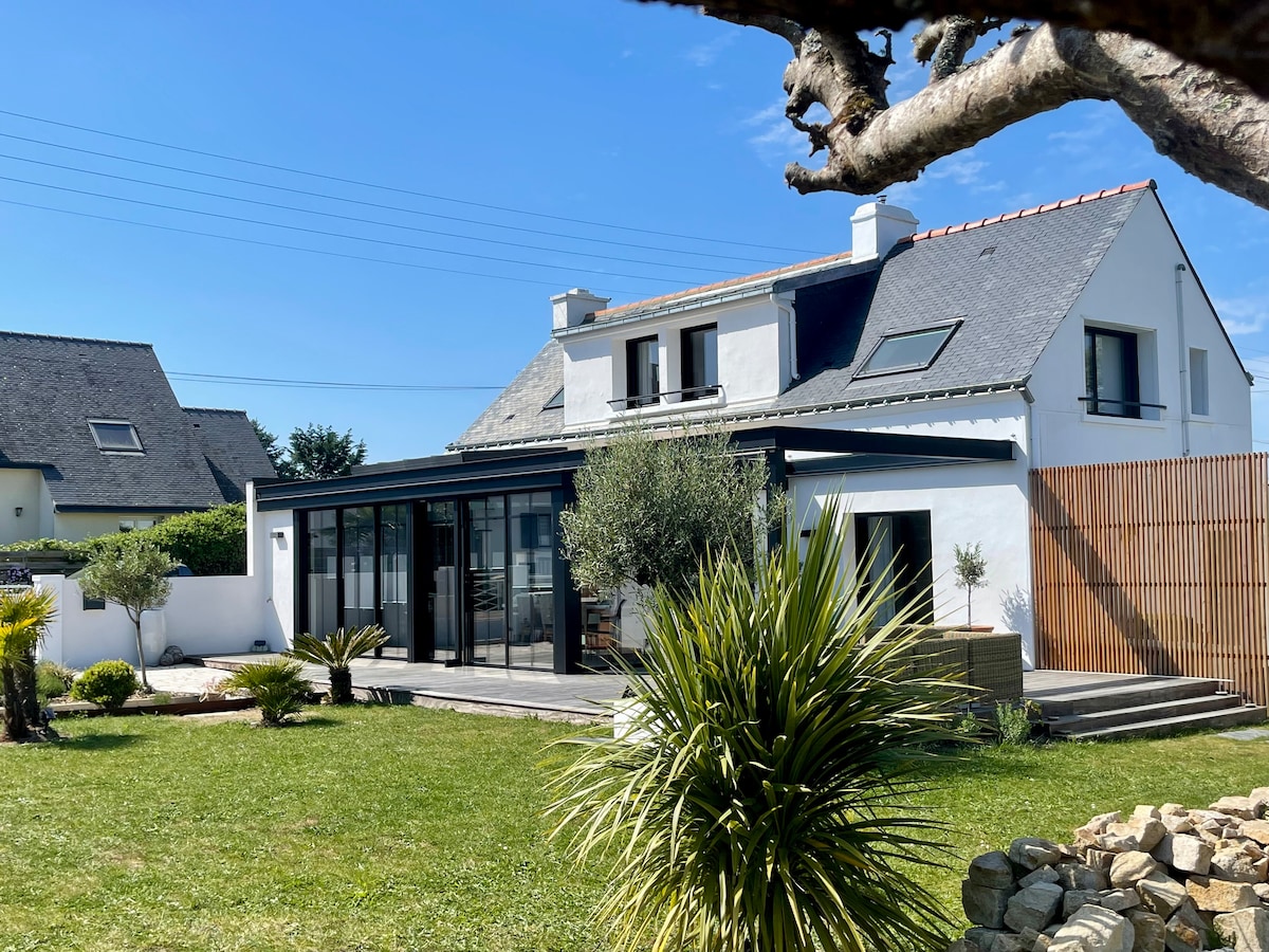 Sainte Barbe, charming hamlet of Plouharnel, enjoy a modern house. Breathtaking view of the dunes, direct access to the beach (900 m) through the dune path. Ideally located on the "La Littorale" greenway, these are car-free holidays for your activities: surfing, kite surfing, horseback riding, cycling, walking... Quietly facing south and west, the house offers a spacious wooden terrace (70 m2) for relaxing moments while the children (or adults) will discover the Tree House.
