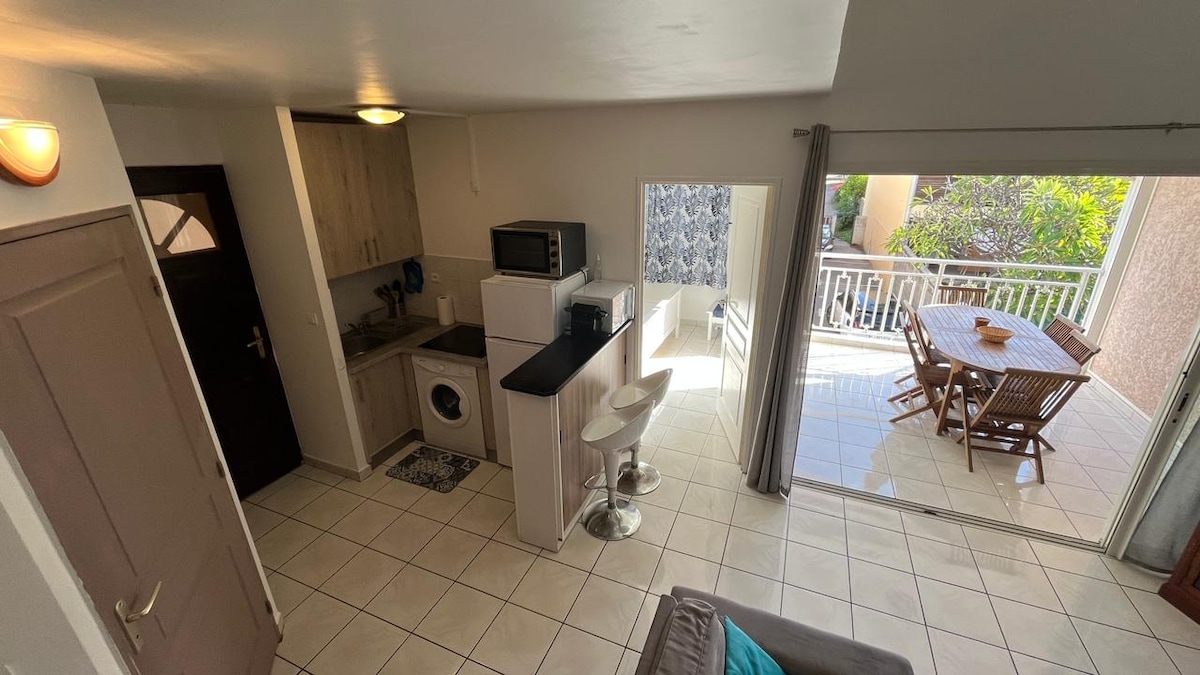 Bienvenue dans cet 'appartement climatisé de 30 m2 avec une mezzanine, à Saint-Gilles les Bains , pour 2 personnes au sein d'une résidence calme, sécurisée et végétalisée. Profitez de la vue agréable sur la piscine et sans vis à vis! Vous serez proche des plages de Boucan, des Roches Noires, des commerces de Saint-Gilles et de la route des Tamarins . Posez vos valises et découvrez tous les sites touristiques !
